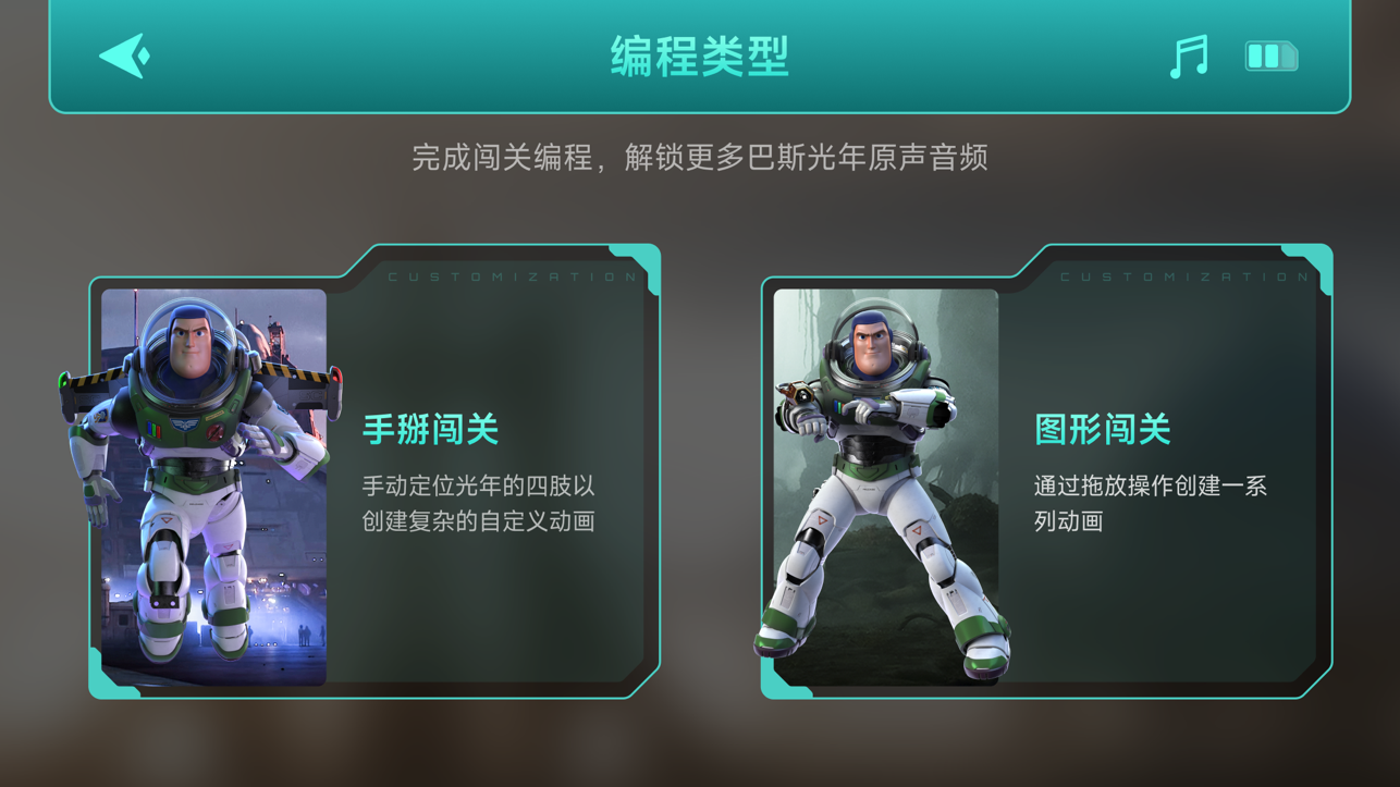 任务闯关:您可以通过手掰以及图形化编程来控制巴斯光年体验来通关固定的关卡,通过巴斯光年的高可玩性让您沉浸在机器人的世界中。