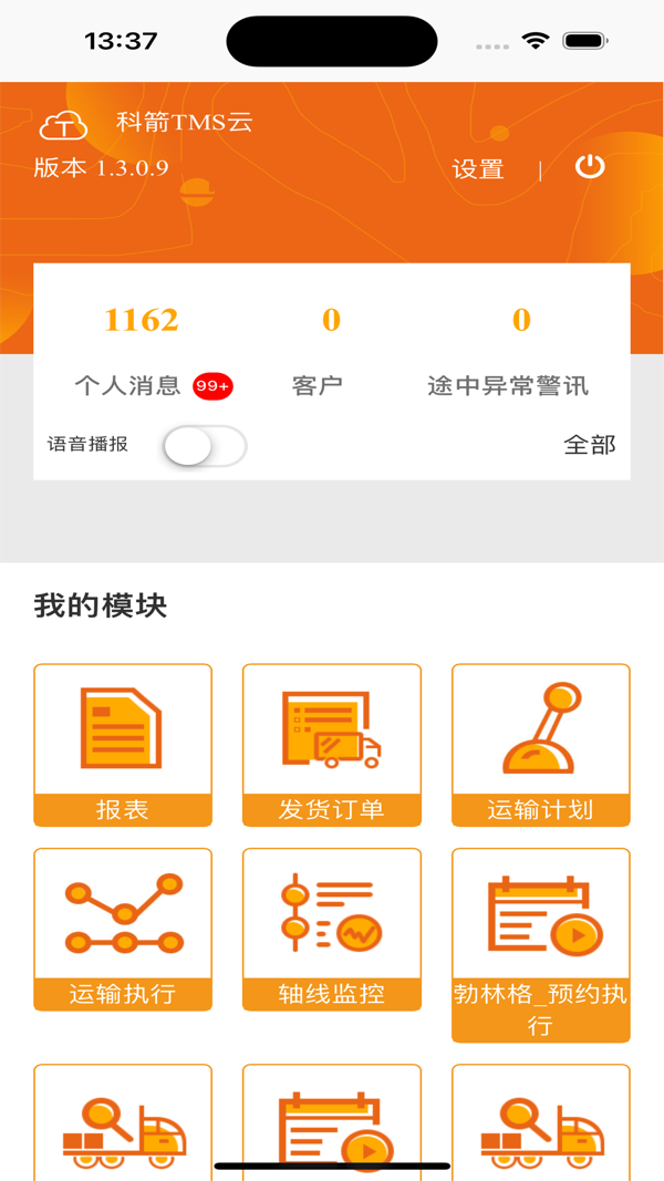TMS云执行端支持订单创建,订单配载,运单调整,运力修改,节点提到货,运单签收和评论,基础资料维护,承运商网络货运,运输轨迹查询等货运数据同步操作。