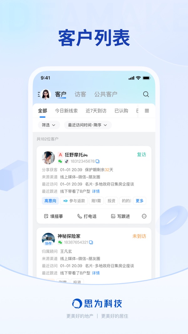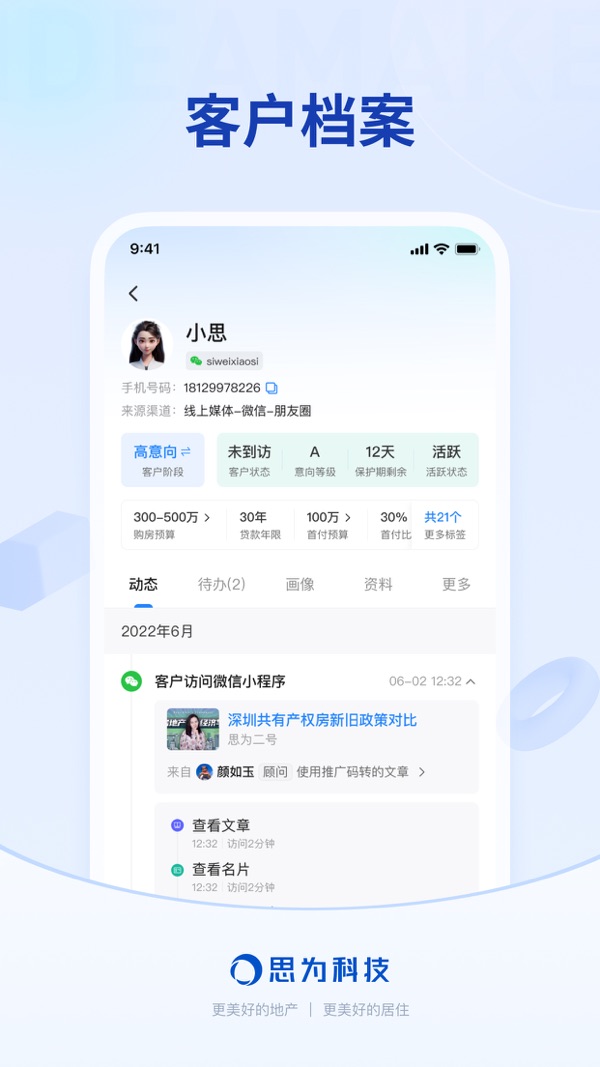 能力③:精细客户运营。告别粗放式跟进,实时获取客户动态,清晰洞察客户意向,提供销冠智能跟客模型指导,快速提升过程中的转化率。