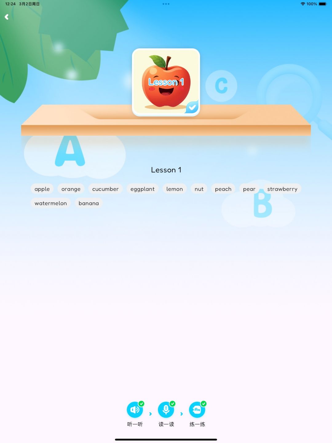 单词认读练习 —— 通过图文结合、语音引导和趣味互动,帮助孩子高效记忆单词,强化拼写和理解能力。